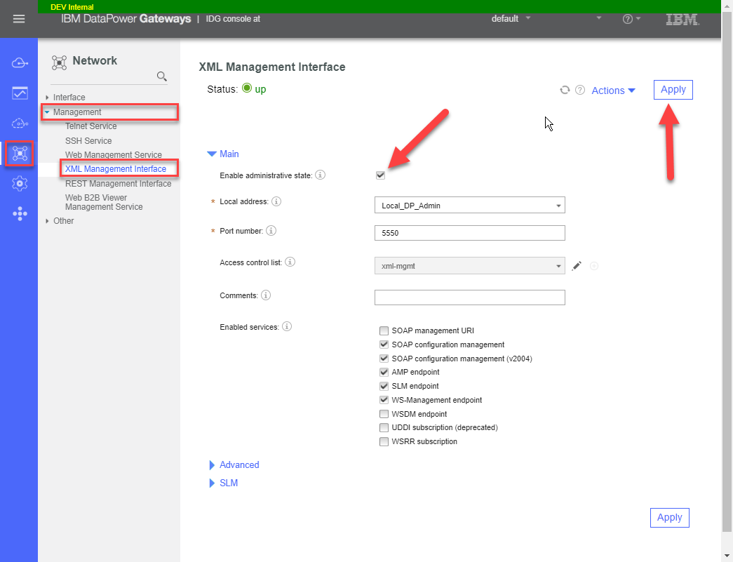 SLM: If your DataPower is part of an SLM group, you would configure the update interval here. This is another advanced feature of the DataPower platform which we will not cover here.