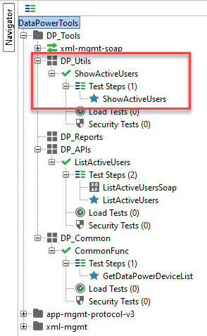 You should be familiar with this process by now, so go ahead and create the ShowActiveUsers test case and test step under “DP_Utils”.
